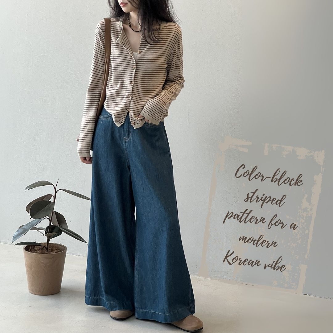 - ➖撞色條紋設計:展現休閒活力的韓式風格