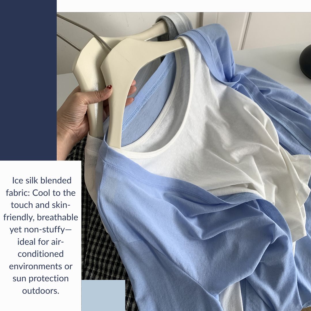 · ❄️冰絲混紡布料:觸感涼爽親膚,透氣不悶熱,非常適合空調環境或戶外防曬。