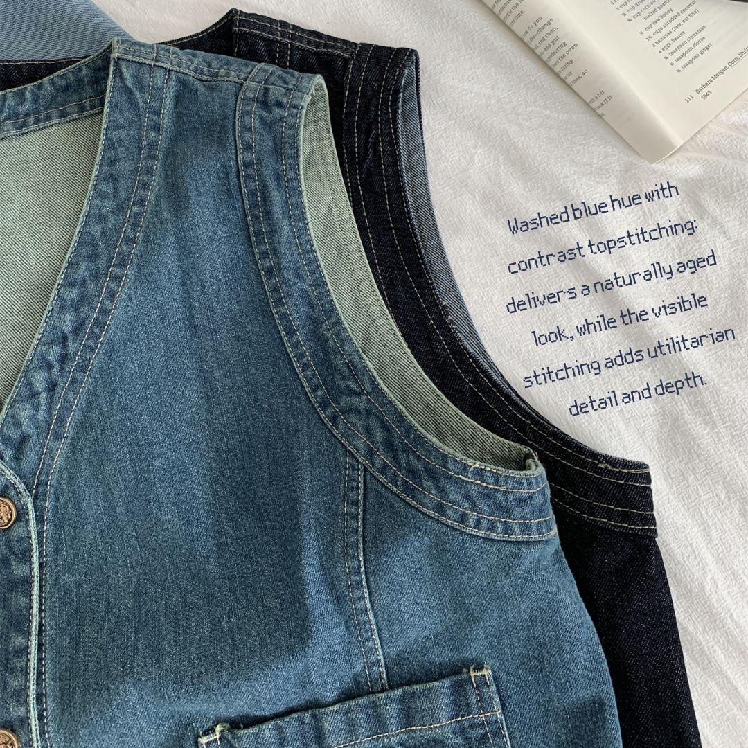· 💙水洗藍色調與對比色明線縫製:營造自然做舊效果,可見的縫線則增添實用細節與層次感。