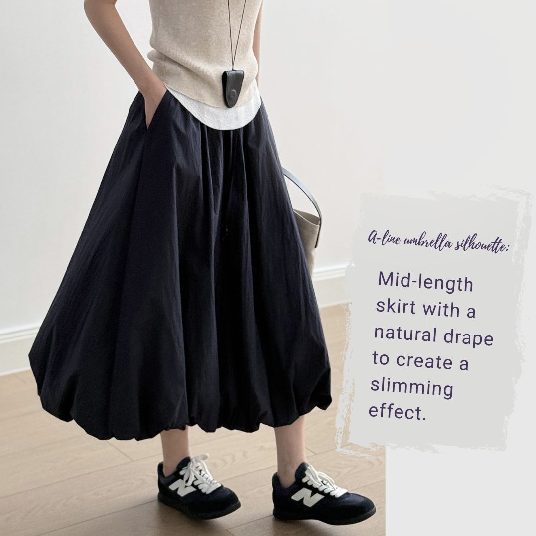 🅰️A字繖狀輪廓:中長裙,自然垂墜,打造修身效果。