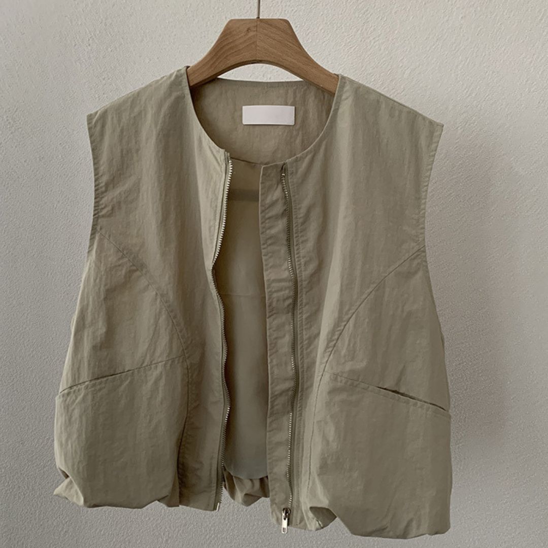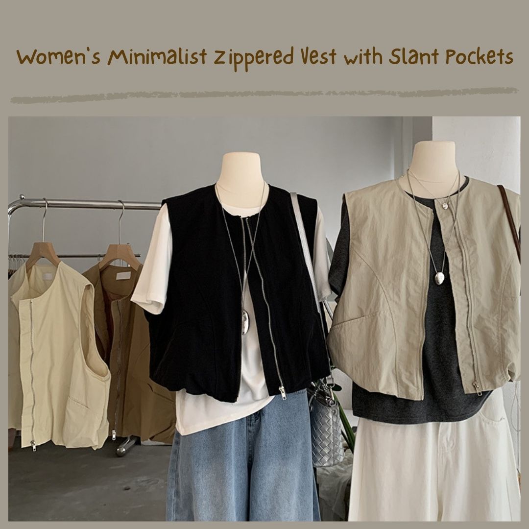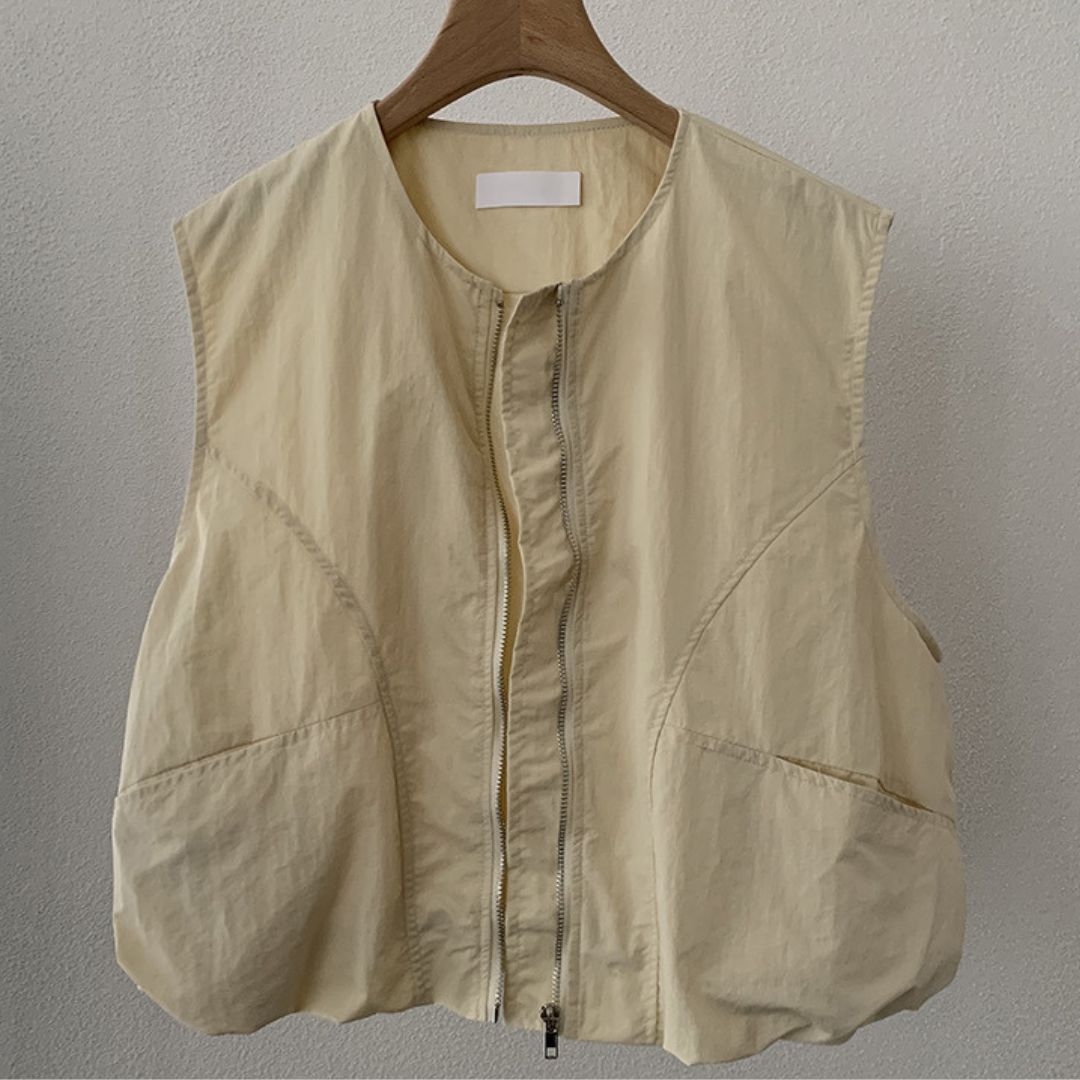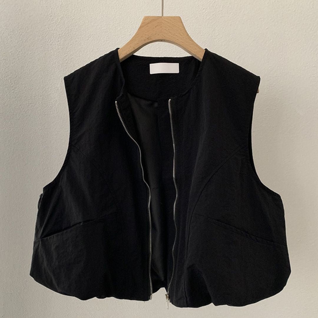 女士簡約斜口袋拉鍊背心