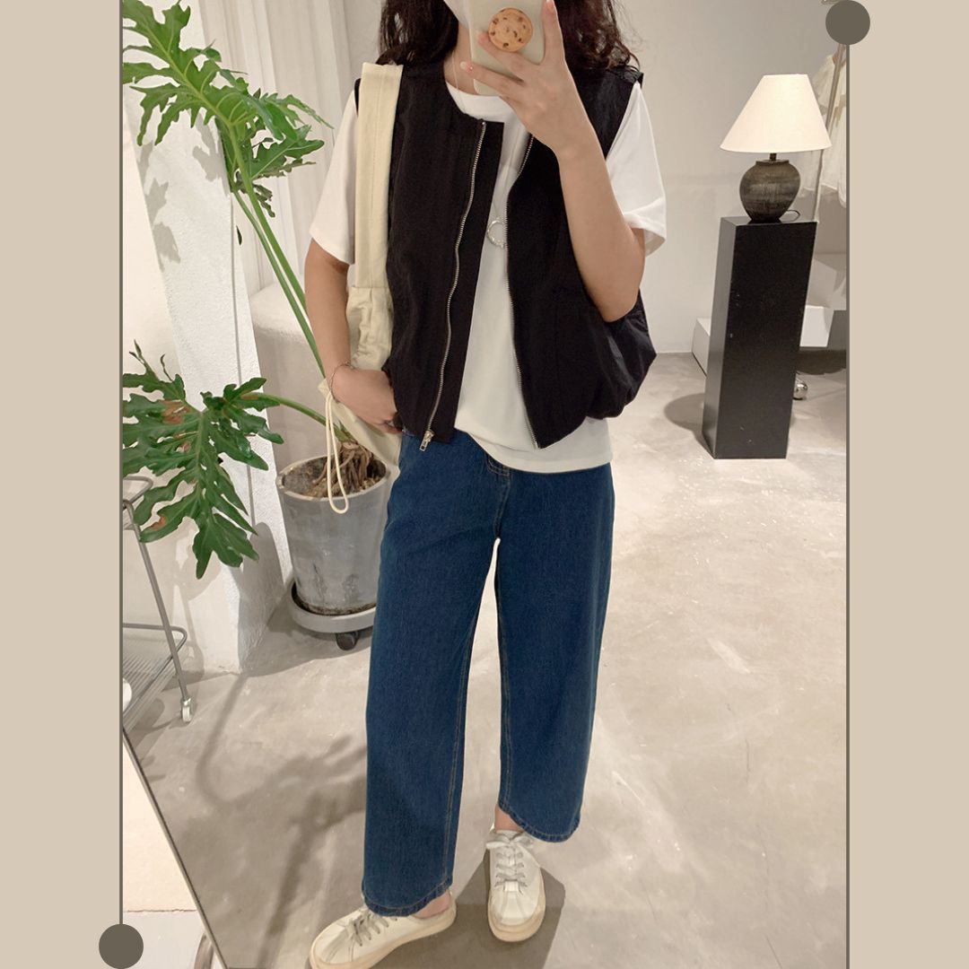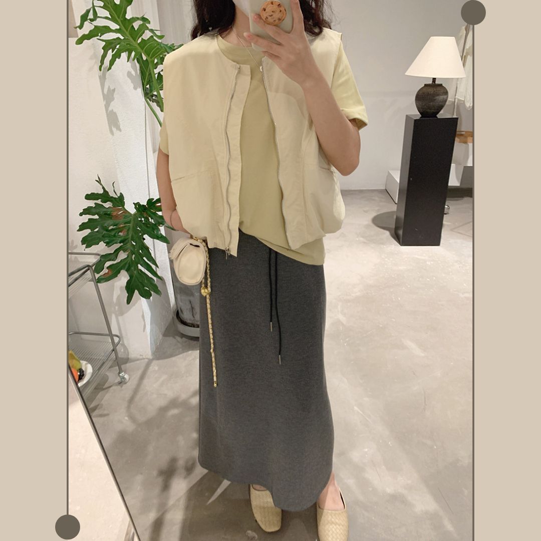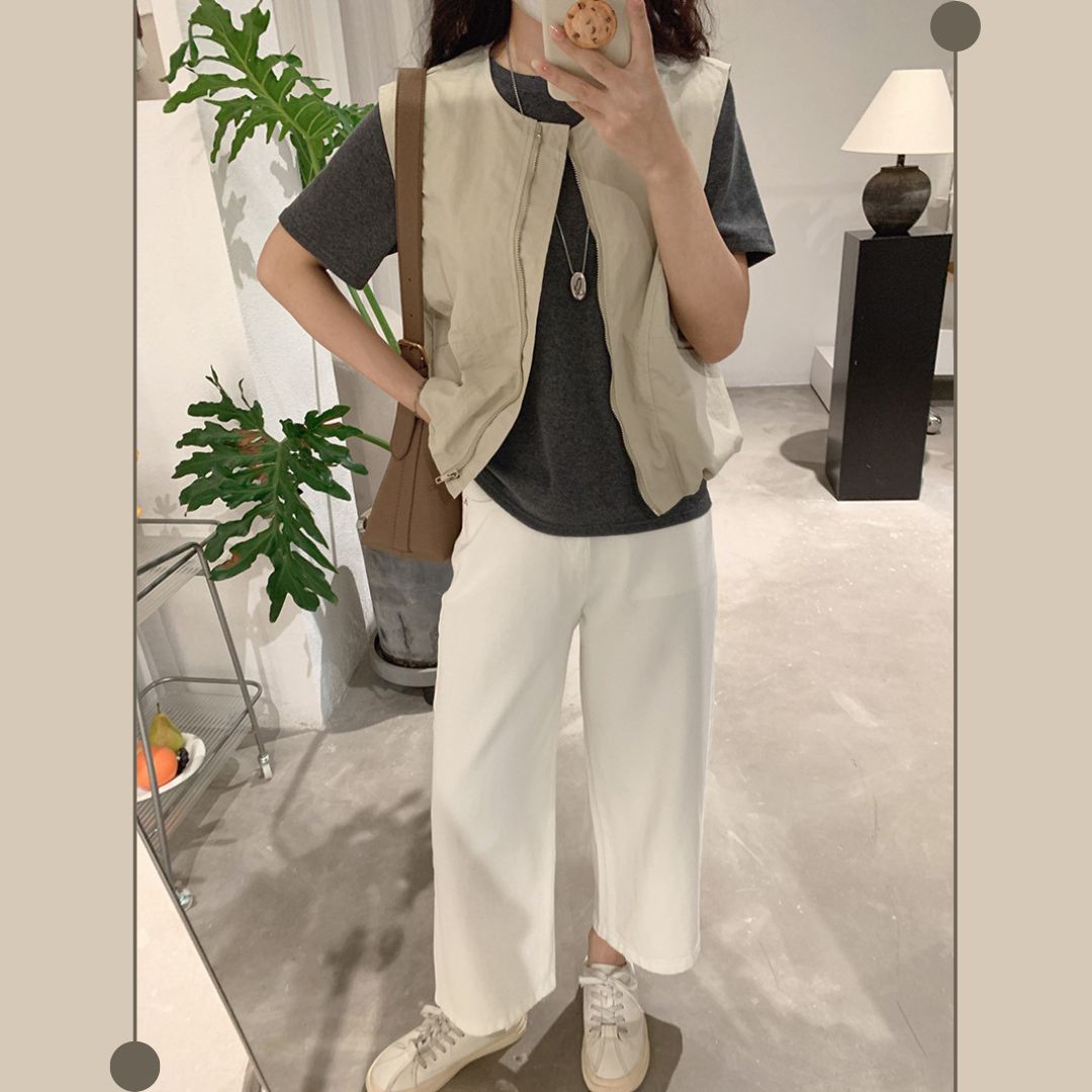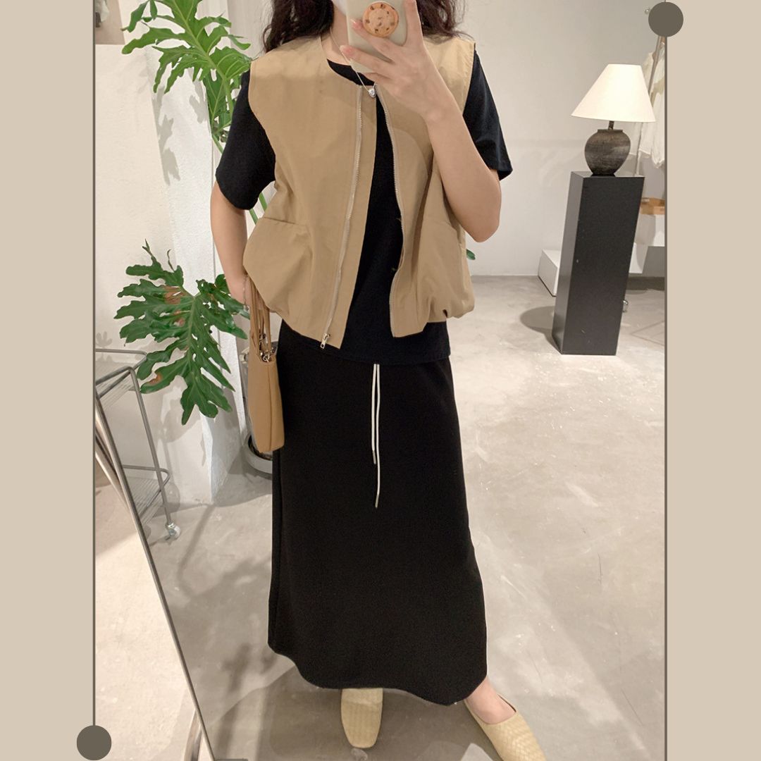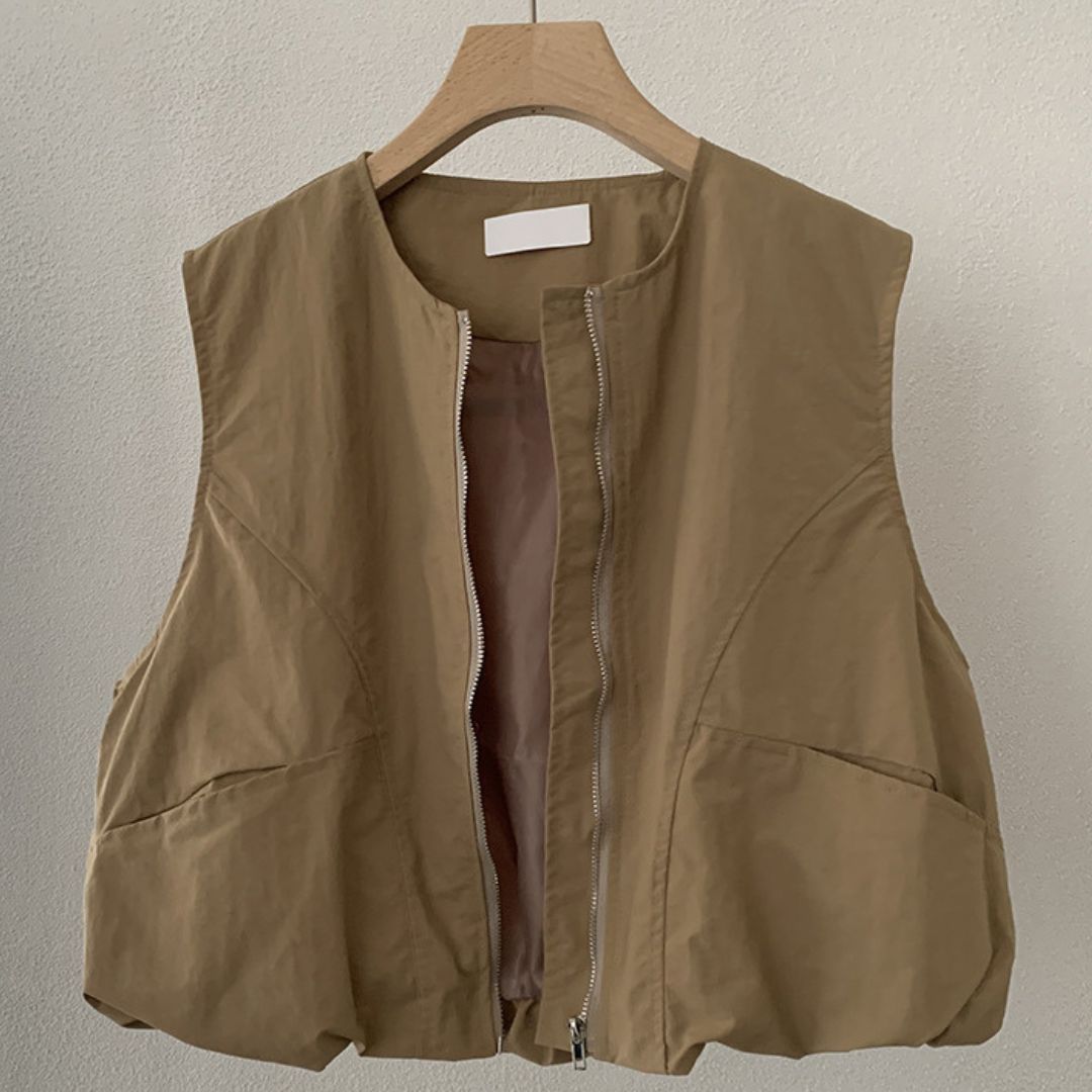 女士簡約斜口袋拉鍊背心